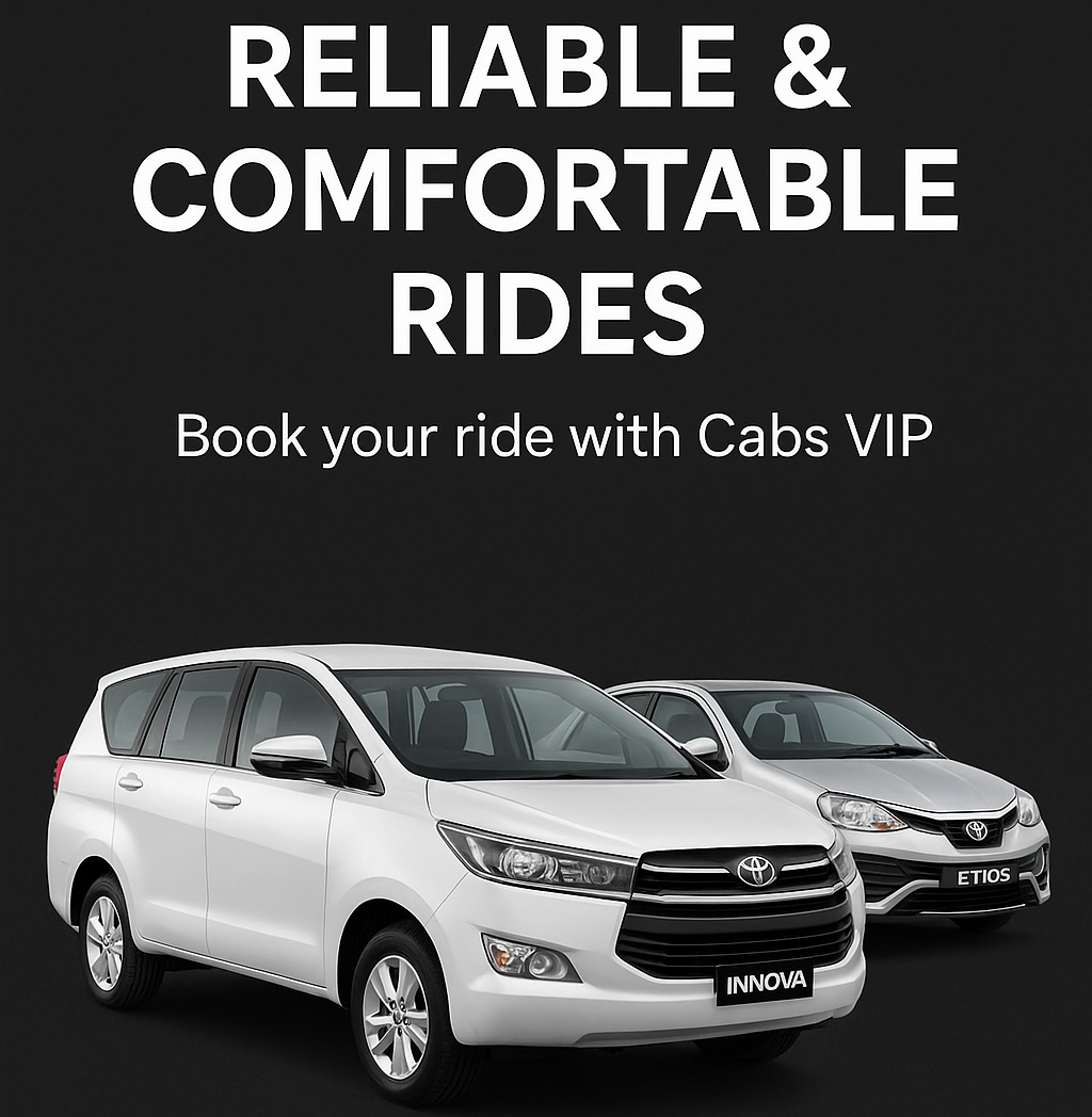 Cabs VIP provides professional and reliable cab services in Bangalore. We ensure comfortable rides, timely pickups, and a safe journey to all your destinations.